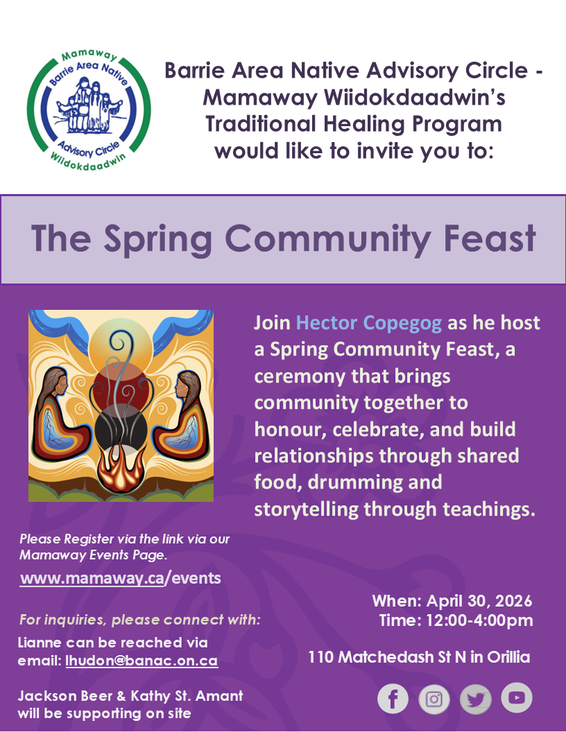 Good day, You are invited to join our Mamaway Elder, Hector Copegog for a Spring Community Feast. “A ceremony that brings community together to honour,...