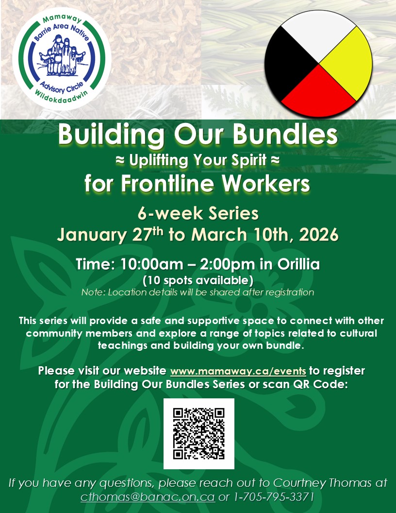 Join Mamaway Wiidokdaadwin Life Promoters Courtney Thomas and Bawd Elliott for Building Our Bundles: Uplifting Your Spirit 6-week Series! This series will provide a safe...