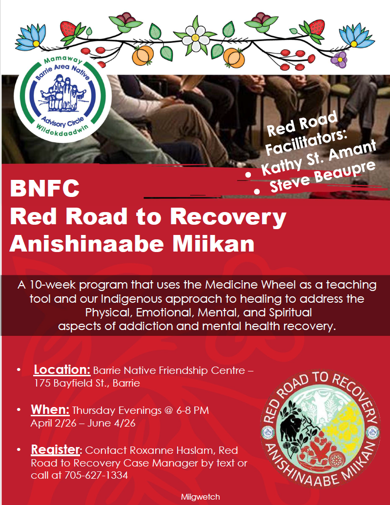 Barrie Native Friendship Centre 175 Bayfield St, Barrie, Ontario, CanadaA 10-week program that uses the Medicine Wheel as a teaching tool and our Indigenous approach to healing to address the Physical, Emotional, Mental, and...