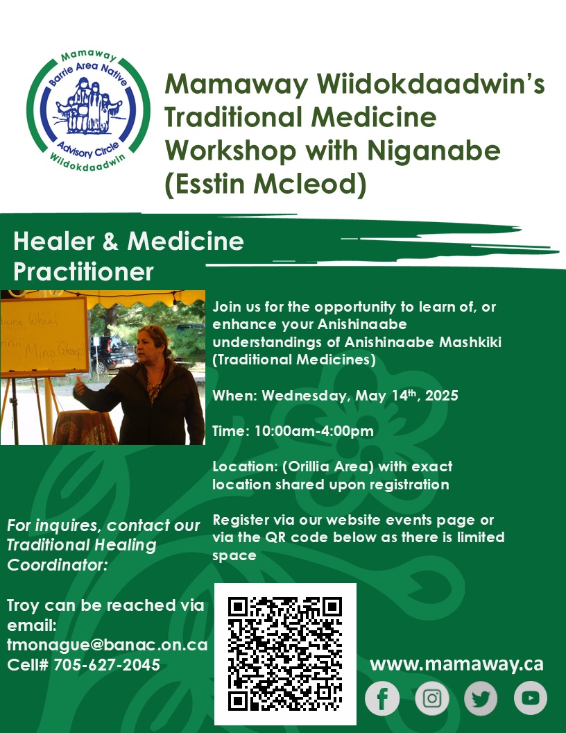 Ceremonial Medicine making Workshop with Esstin Mcleod in Mamaway Wiidokdaadwins Orillia (in-person) Limited space Please sign up via this link; https://survey.alchemer-ca.com/s3/50360445/Mamaway-Wiidokdaadwin-s-Traditional-Medicine-Workshop-with-Esstin-Mcleod-Orillia A little more... |