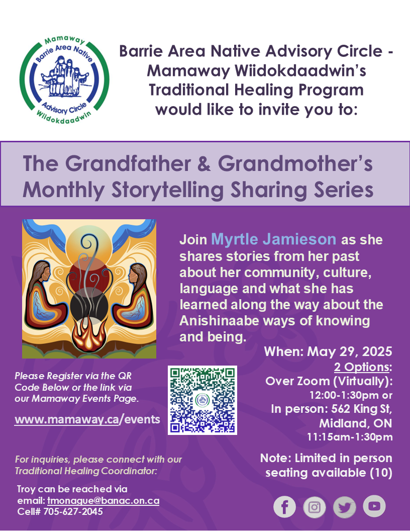Good day, We are thrilled to welcome Myrtle Jamieson from Beausoleil First Nation to join us for the next Grandmother & Grandfather’s Storytelling Sharing Series... |