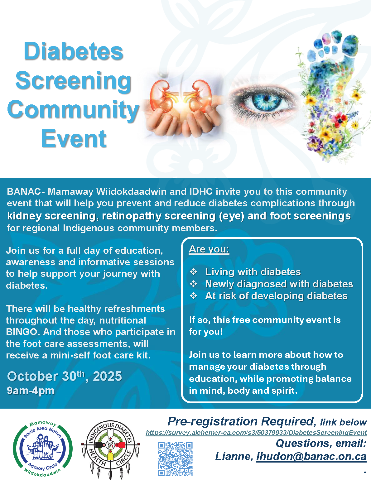 Good day, BANAC- Mamaway Wiidokdaadwin is partnering with the Indigenous Diabetes Health Circle (IDHC) to host this Diabetes Screening Community Event in Rama on October... |